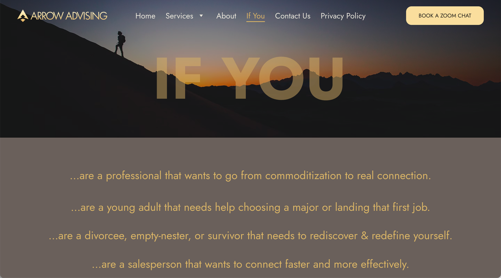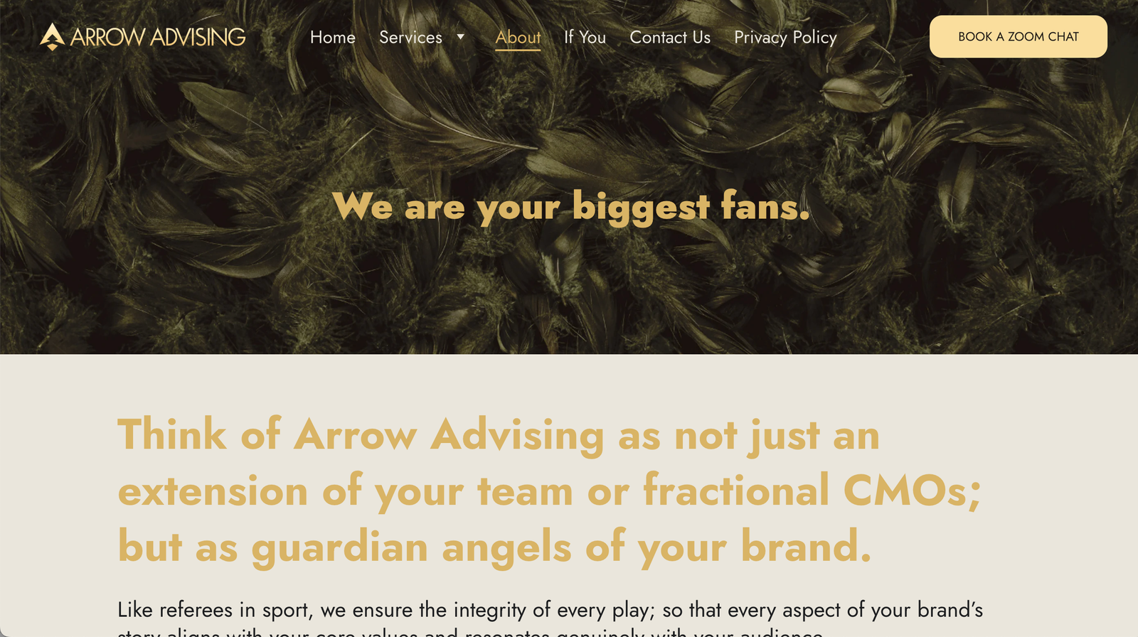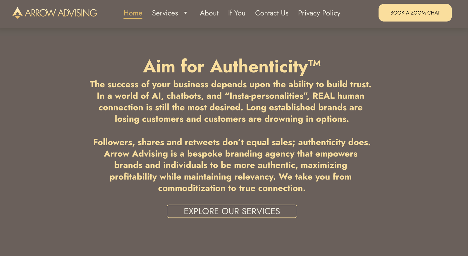 Designed for Arrow Advising — founded by Cupid Hayes, a Telly Award-Winning Hollywood Casting Director and Brand Strategist. Her Aim for Authenticity™ framework inspired a sleek, emotionally intelligent design.